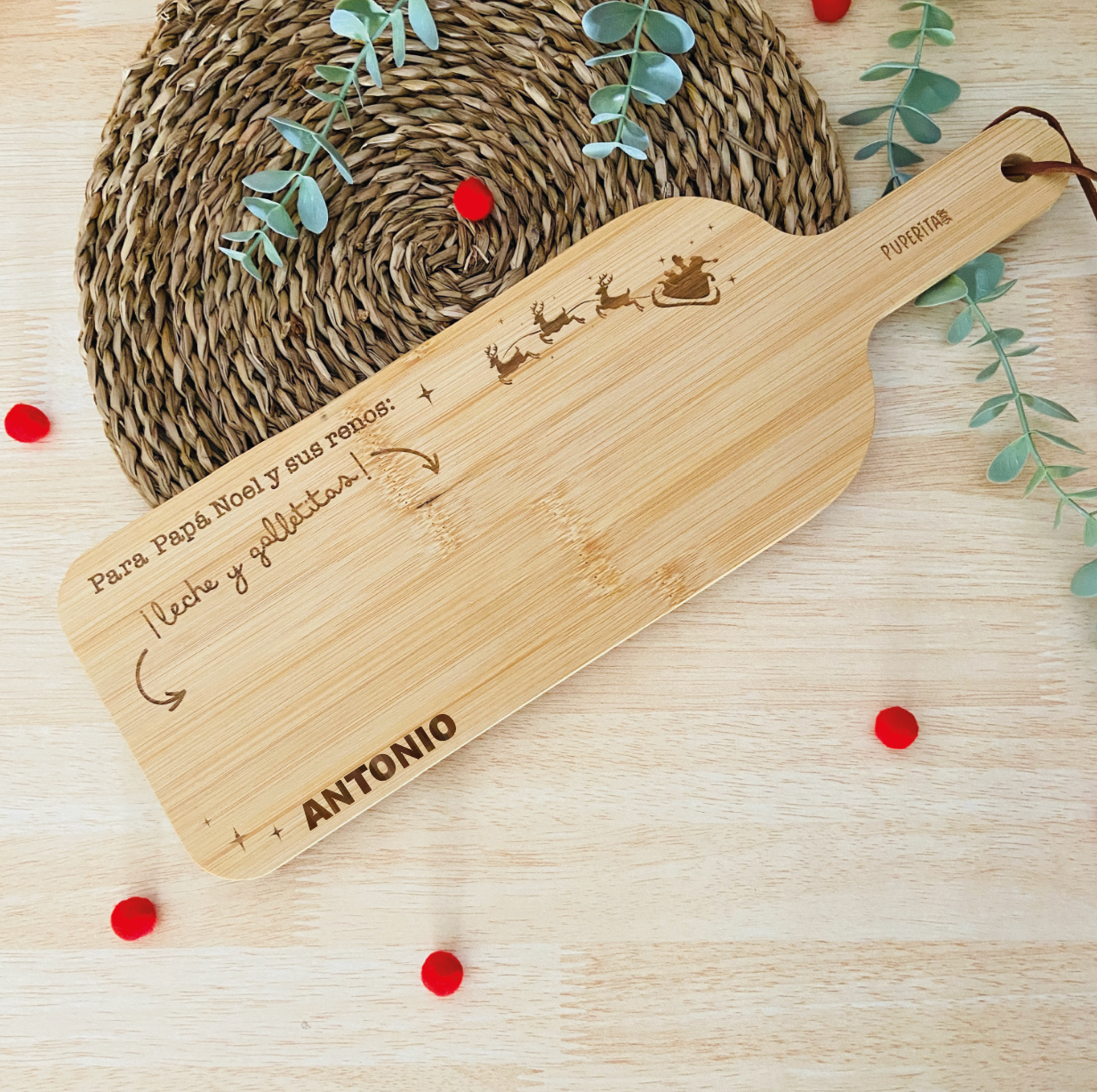 Tabla de bambú, a elegir el diseño que más te guste, puedes elegir entre poner un nombre o 3 como máximo o los apellidos familiares