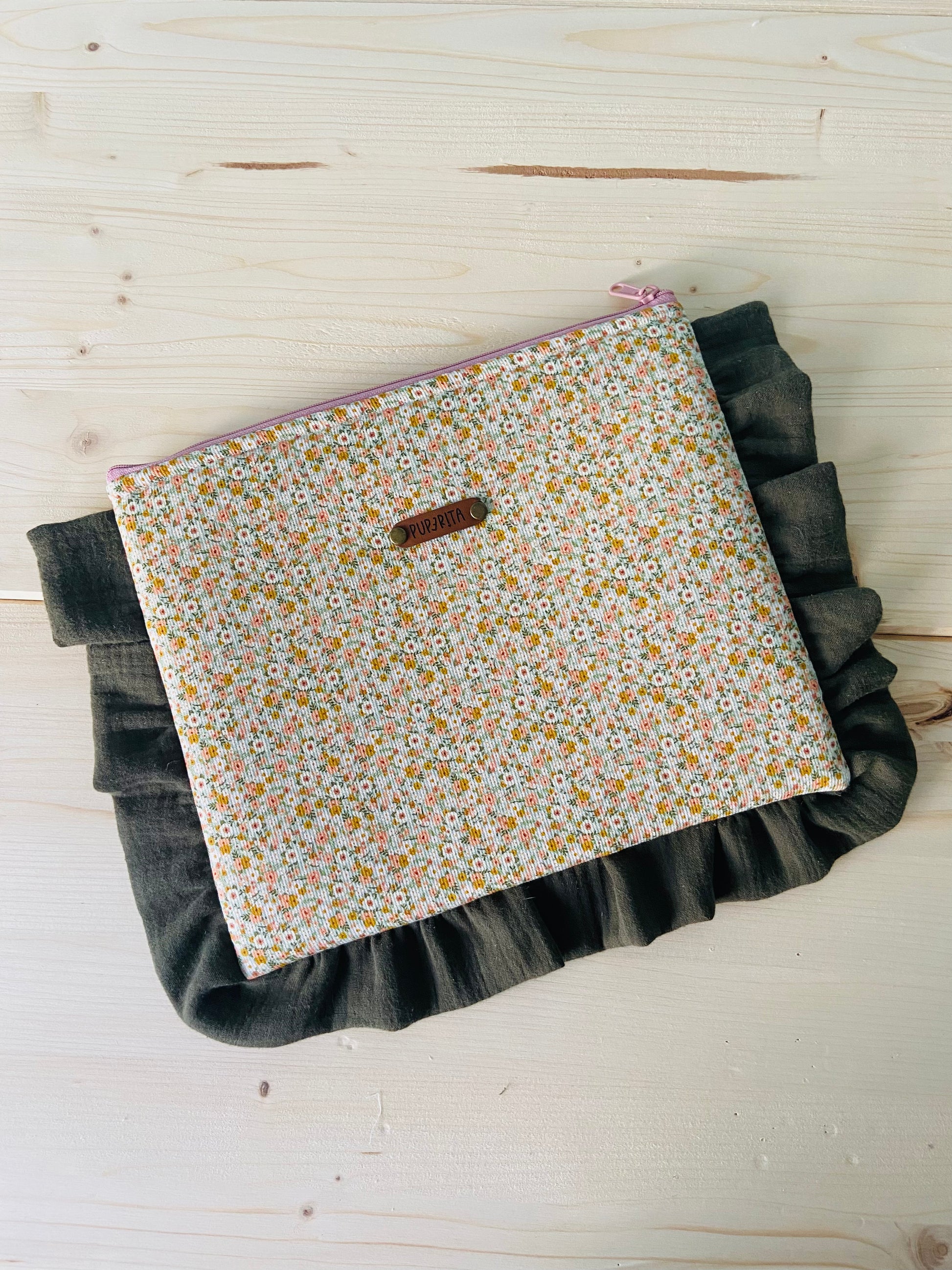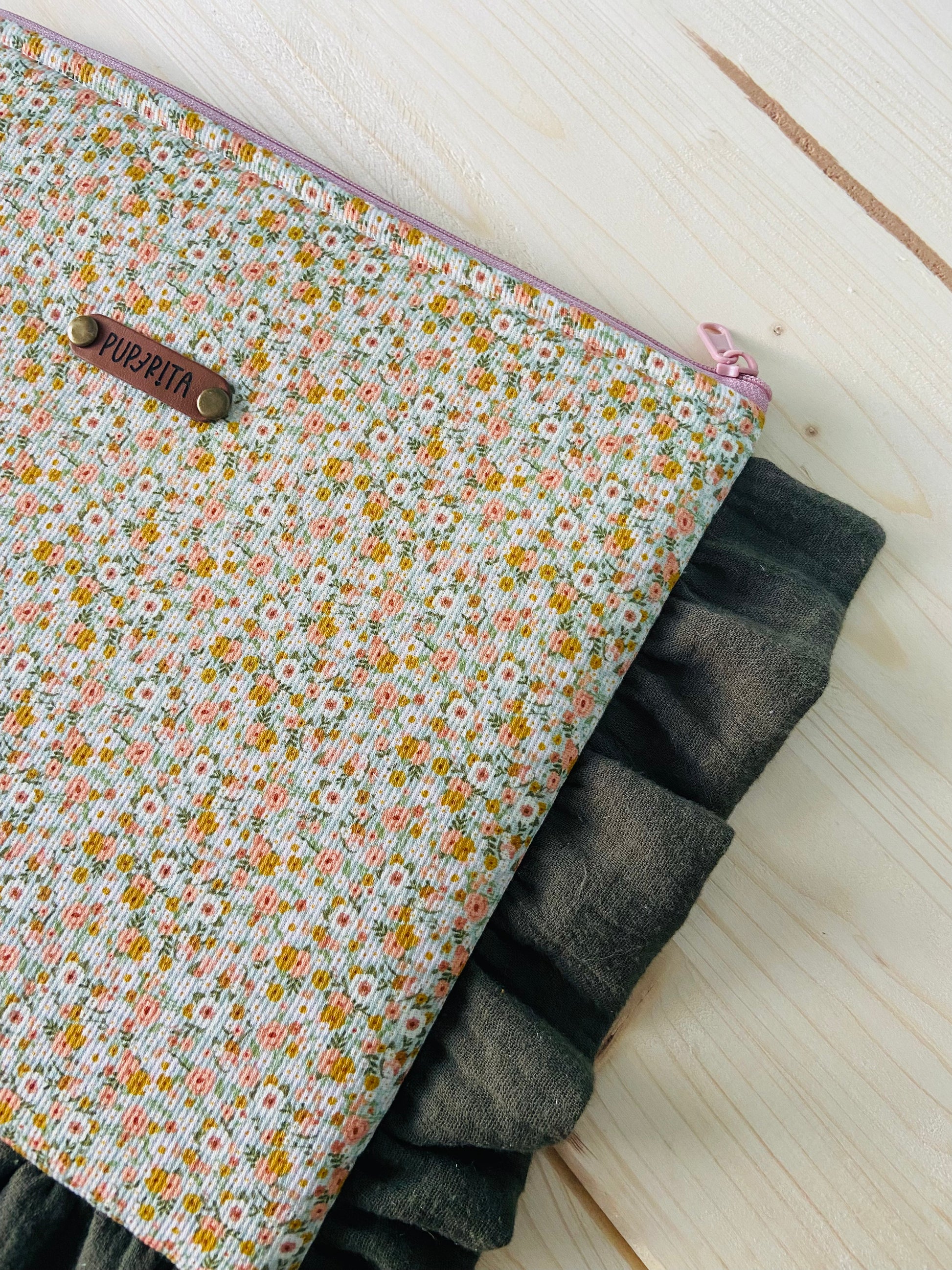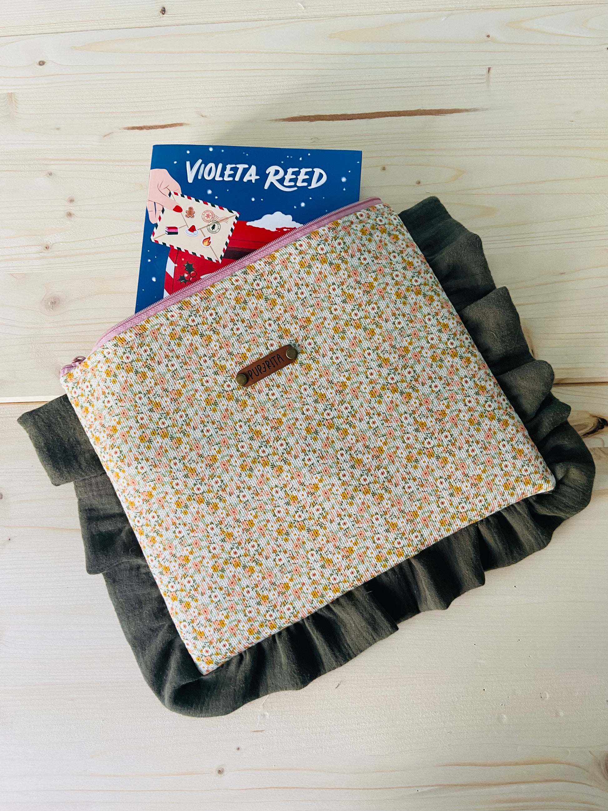 Bolsito, funda para lo que tu quieras, libro, iPad, tablet, incluso neceser. Puedes guardar un libro de bolsillo y hasta uno de 590 páginas. Con volante decorativo.