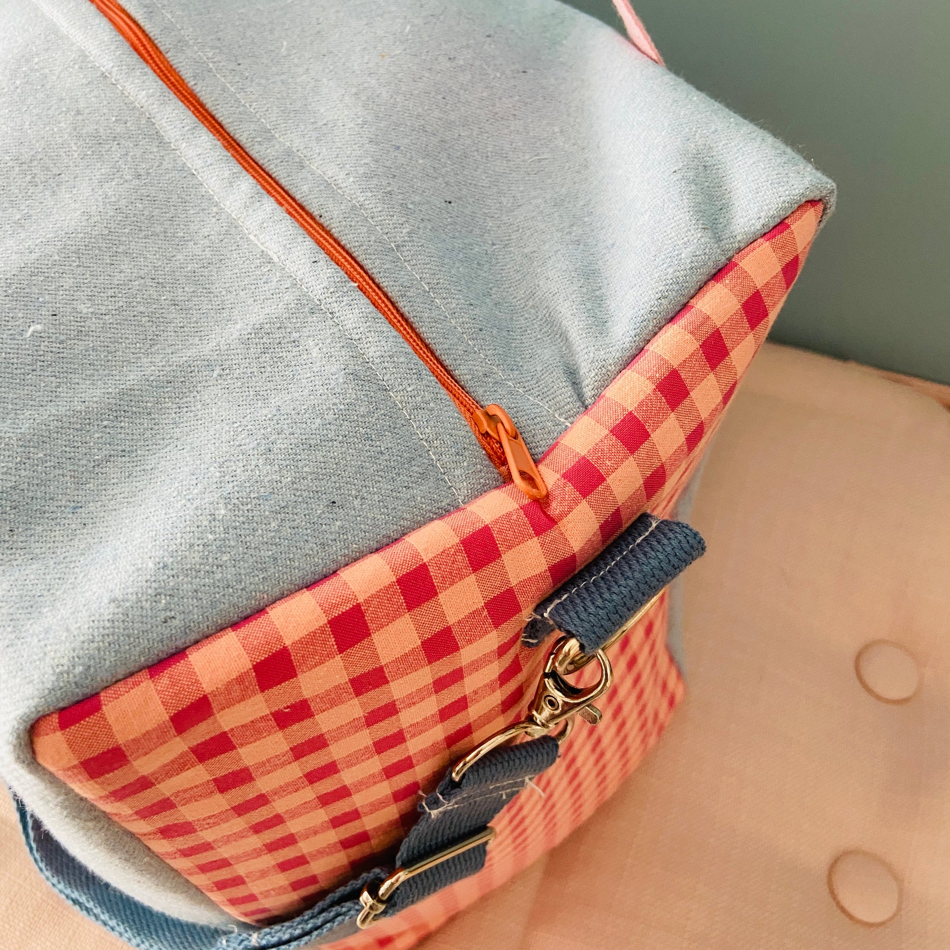 Base con tejido vaquero, cintas y cremallera irán combinados con las telas que elijas