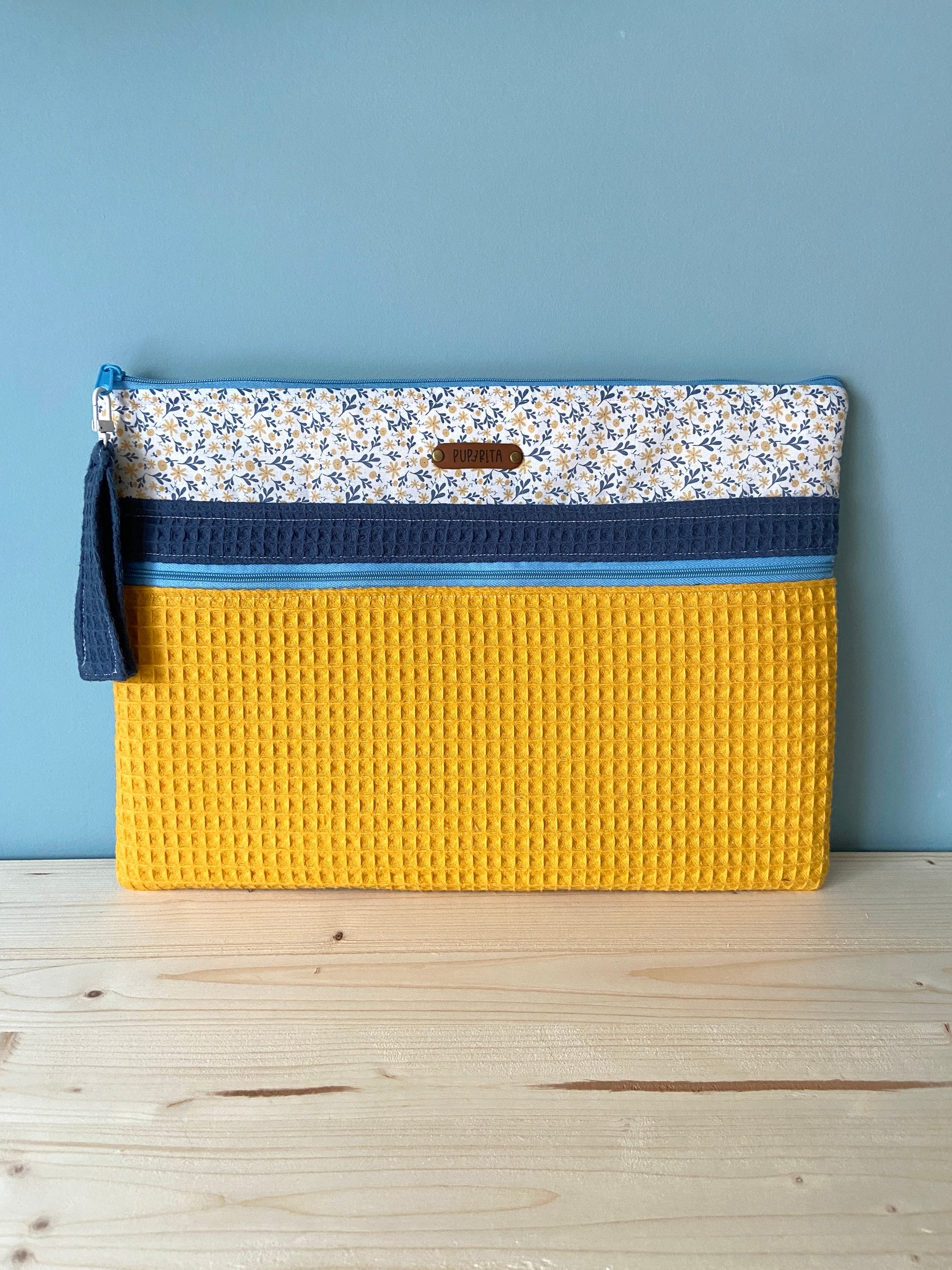 Funda portátil con cremallera y bolsillo. Medidas: 37x25cm